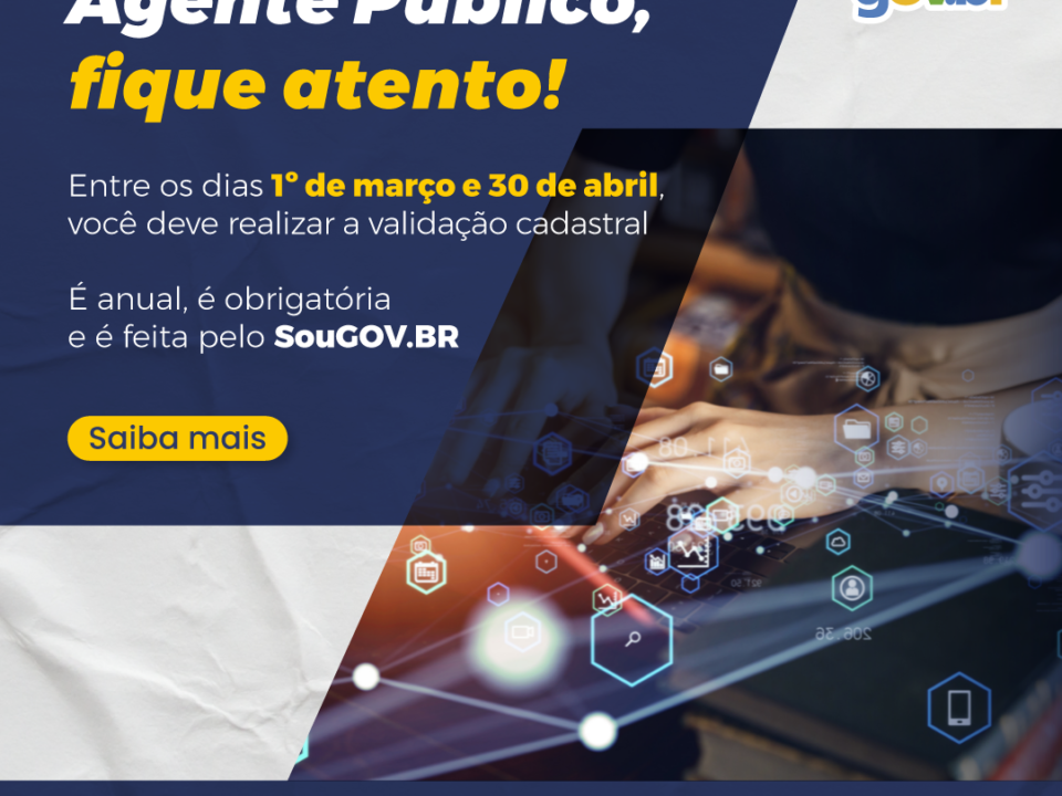 Atenção! Entre os dias 1º de março e 30 de abril, todos os agentes públicos civis do Poder Executivo Federal devem realizar a validação dos dados pessoais e funcionais cadastrados […]